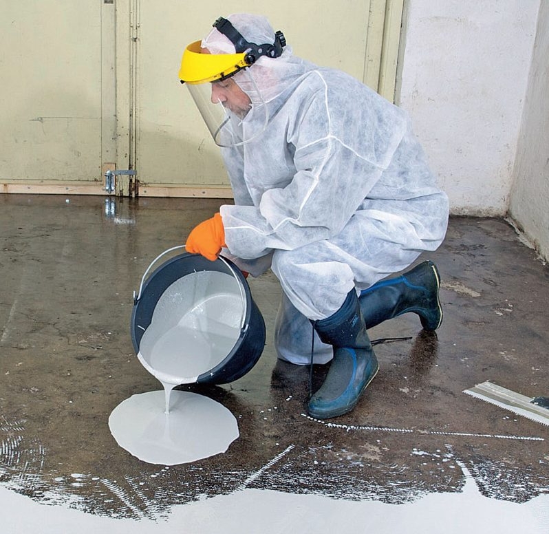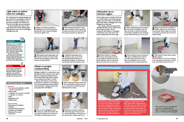 Den tokomponente epoksymalingen har god vedheft hvis underlaget er helt rent. Det sikrer du ved å vaske gulvet med grunnrens. Områder med flekker fra f.eks. olje eller såpe renses ekstra godt.