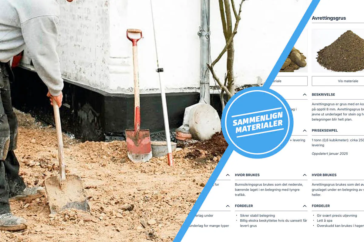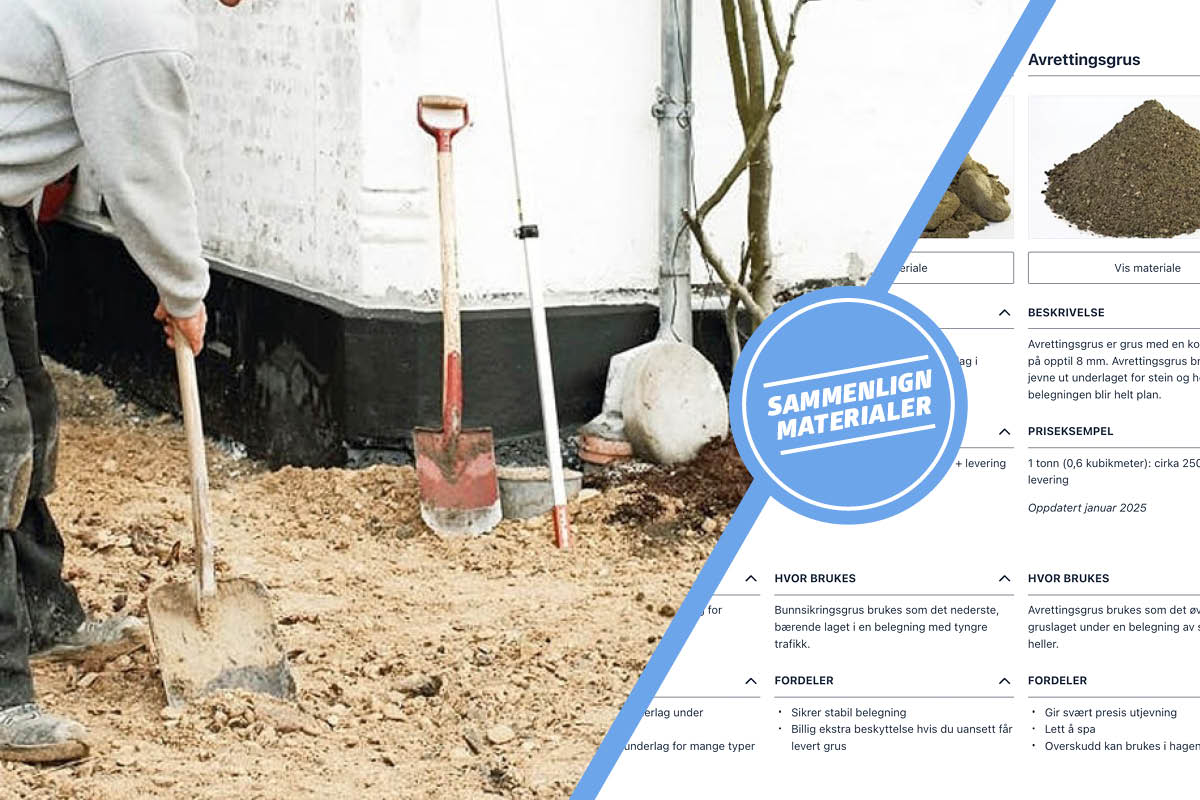Når du skal anlegge en steinbelegning, for eksempel til en innkjørsel eller en terrasse, bygger du den opp med flere lag grus av ulik grovhet. Til en oppkjørsel trenger du vanligvis 2-3 lag grus, avhengig av grunnforholdene, mens du på en uteplass ofte kan nøye deg med to typer grus – pluss en svært viktig type sand til fuging mellom steinene.