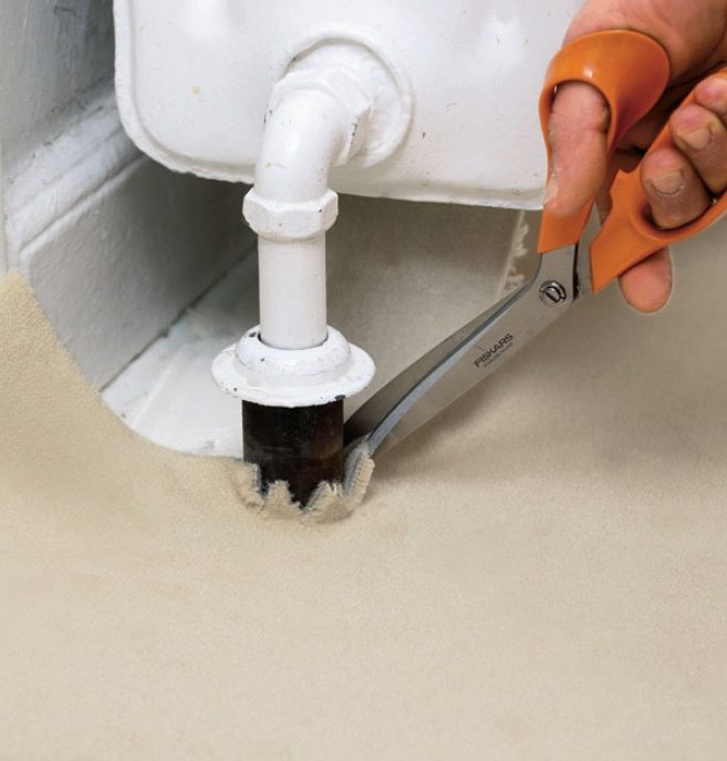 Skjær av den overskytende delen med en hobbykniv. Hold kniven i en vinkel på 45 grader, og trykk teppet ned med hendene mens du skjærer - evt. skjæremerker blir ikke synlige.