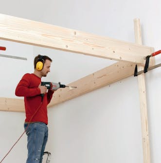 Når hullet er boret, støvsuges det grundig og pluggen dyttes inn. Den skal passe stramt og må kanskje slås inn med hammer. Hullet skal være dypere enn pluggen, slik at skruen kan skrus gjennom den. Deretter skrus skruen gjennom emnet som skal settes fast, og inn i pluggen.