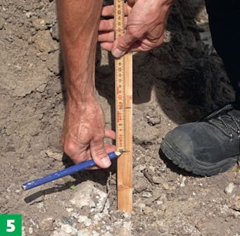 Slå påler i bakken rett utenfor det området der innkjørselen skal være. Bruk dem som peilemerker når du måler høyden og fallet på innkjørselen.