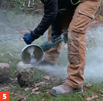 Brosteinene tilpasses med en vinkelsliper. Med en diamantskive i maskinen kan du skjære spor. Deretter er det relativt enkelt å dele granitten med en meisel.