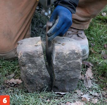 Bruk en brosteinshammer. Overflaten på den er behandlet, slik at den kan slå på steinene uten å skade dem. Samtidig kan den andre siden brukes til å løsne grusen.