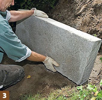 Plasser steinene til vangene i betongen. På samme måte som med kantstein, skal de trykkes ned i betongen og støttes opp av betong på sidene.