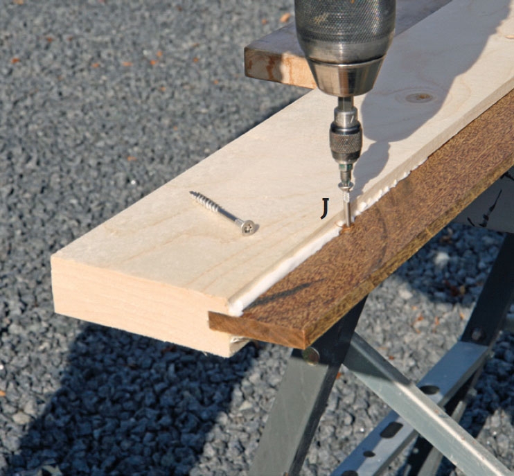 For å unngå at hellene sprekker skal de deles inn i seksjoner. De skal skilles av skillelister, som samtidig gir en flott overgang mellom hellene. Skillelistene lages av 28 x 148 mm bord (C), der en teaklist (B) festes i en not på toppen av bordet. Bordene vil råtne bort med tiden, derfor er det viktig i tillegg å feste teaklistene med rustfrie skruer “på tvers”, slik at de blir sittende i nivå med hellene.