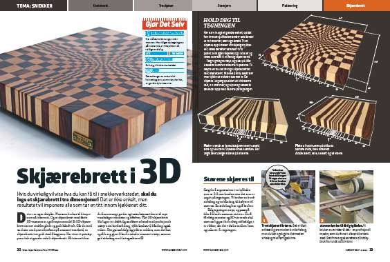 Limet i de to platene er herdet. Nå skal de skjæres til 21 staver i forskjellige tykkelser. Vårt endelige skjærebrett skal ha valnøtt i midten. Derfor skal vi bruke 11 staver av plate 2 og 10 av plate 1. Stavene flettes sammen til det som blir det endelige mønsteret. Du må legge stavene i riktig rekkefølge, ellers ødelegger du 3D-mønsteret.