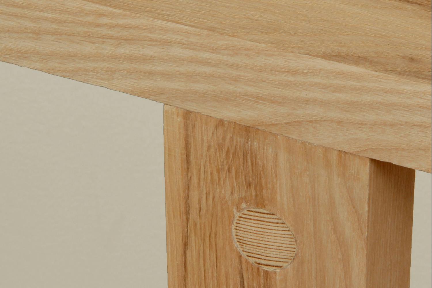 Rundstokker er ideelle for sammenføyninger av treemner. Her skjøtes to trestykker sammen, men den lange skruen må gripe inn i endeveden på den ene listen. Endeveden er svak, og det er stor risiko for at skrueforbindelsen ikke vil holde i lengden. Bor derfor et hull til en rundstokk 1 cm før det punktet der skruespissen skal ende.