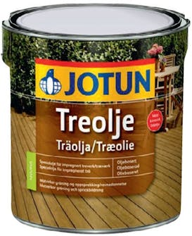 BESKRIVELSE: Olje med fargepigmenter finnes i mange forskjellige nyanser, som gylden, med forskjellige “trefarger”, med grønntoner som trykkimpregnert tre, gråaktige og helt mørke. Jo flere fargepigmenter det er i oljen, desto bedre beskytter den treet, og desto sjeldnere må du rebehandle terrassen.