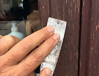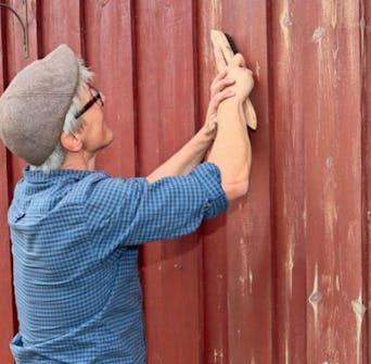 Fjern all løs maling med sparkel, stålbørste eller skrapejern. Sjekk også veggen for ujevnheter, og fjern eventuelle spiker eller skruer som stikker ut.