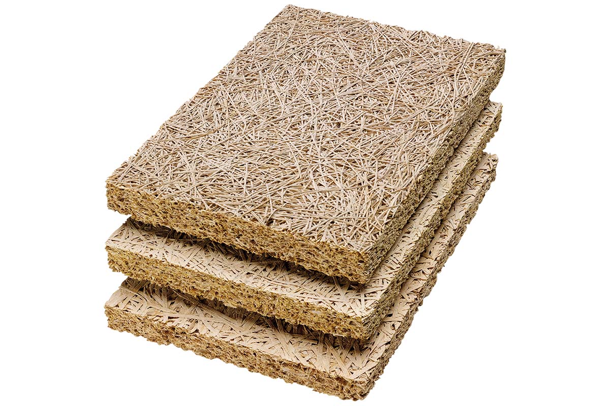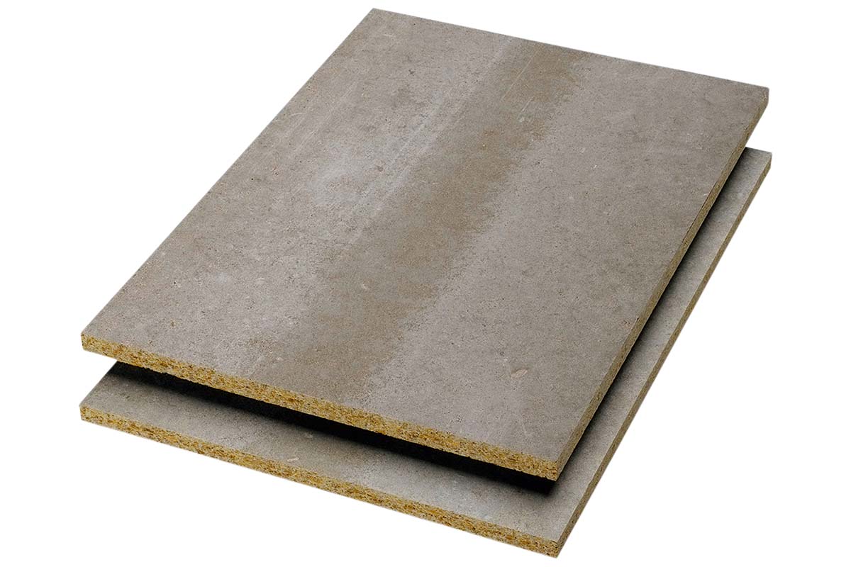 Det vil si tynne trestrimler som er opp til 3 mm brede. Blandingen pakkes i former og presses til den ønskede tykkelsen. Når platene har herdet, inneholder de 70 % tre og 30 % sement. På grunn av den åpne strukturen er platene godt egnet til lydisolering, samtidig som de er varmeisolerende. Fordi tre omkranset av sement ikke kan brenne, fungerer platene også som brannhemmere.