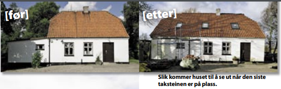 Taket er ryddet, og tilbygget rettet opp slik at muren er vannrett. Nå skal det mures opp over tilbygget slik at huset blir en helhet. Selve huset har en murt gesims som Henning vil føre videre langs taket. Derfor setter han Lise til å tilpasse murstein med vinkelsliperen. Steinene har de fra innsiden av dobbelt-muren i gavlen på huset.