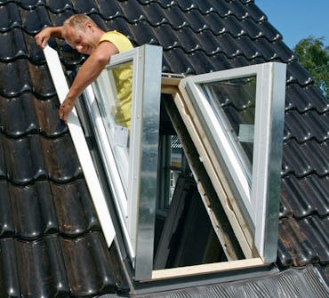 Taket er tungt. Når det skal løftes opp er det en fordel å være to om jobben.