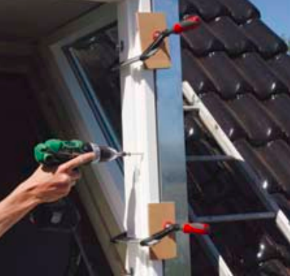 Vannbrett monteres før vinduet kan sette inn. Nedenfra stikkes dette inn i de sporene som finnes i bunnen av sidene. Forkanten justeres, slik at det flukter med sidene i forkant før det festes.