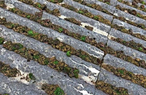 Takplater av fibersement brytes ned med tiden, både av vær og vind og av mose som gror på platene.