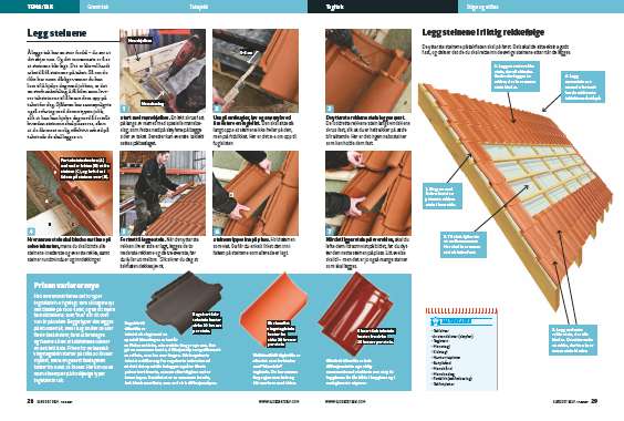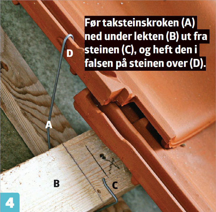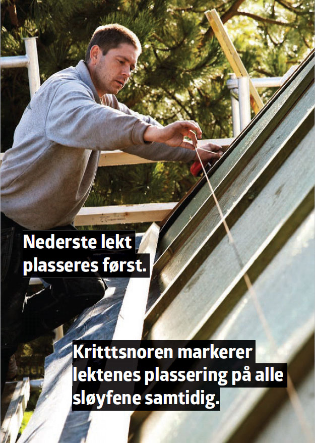 Hver annen stein skal bindes fast inne på selve takflaten, mens du skal binde alle steinene i nederste og øverste rekke, samt steiner rundt vinduer og inndekkinger.