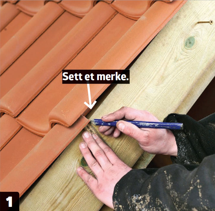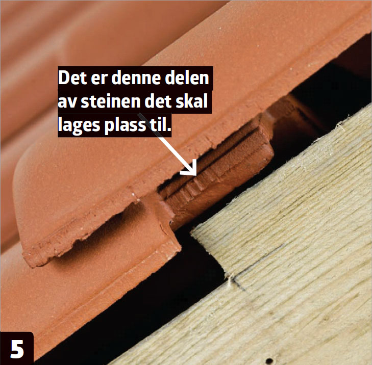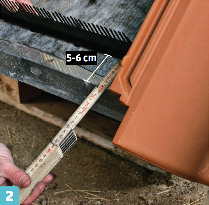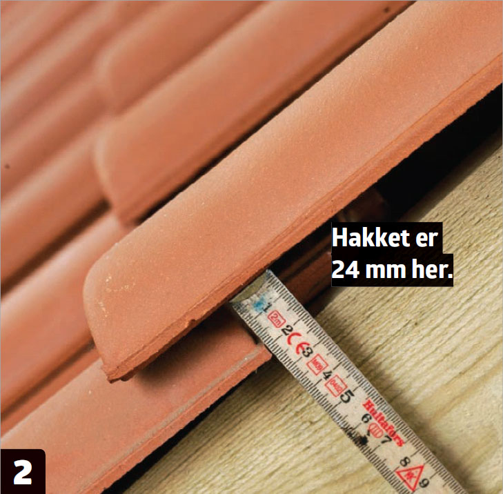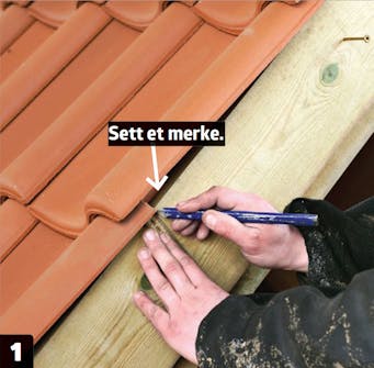 Start med å måle avstanden fra underkant av taksteinen til underkant av den knoppen som steinen skal hvile på. Trekk fra cirka 6 cm (tilsvarer steinens utheng over takfoten).