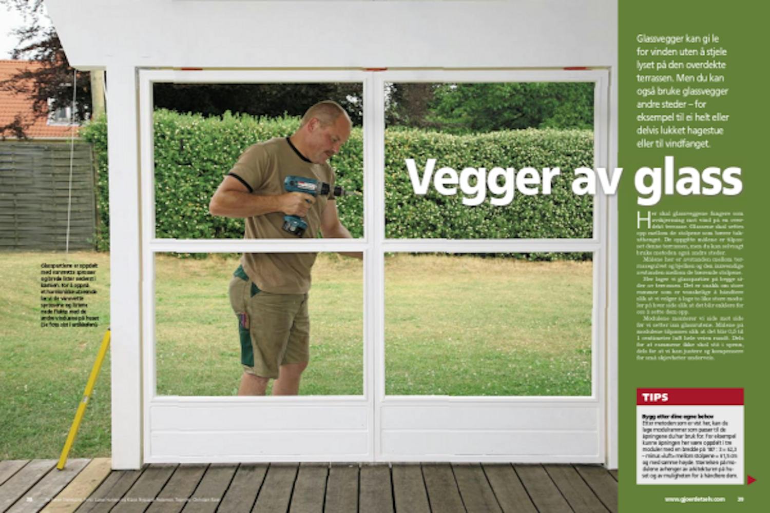 Glassrutene legges i glassfalsene. Når alt er målt opp riktig og alt er i lodd, faller glassene inn på plass og legger seg mot glassbåndene uten å komme i spenn.