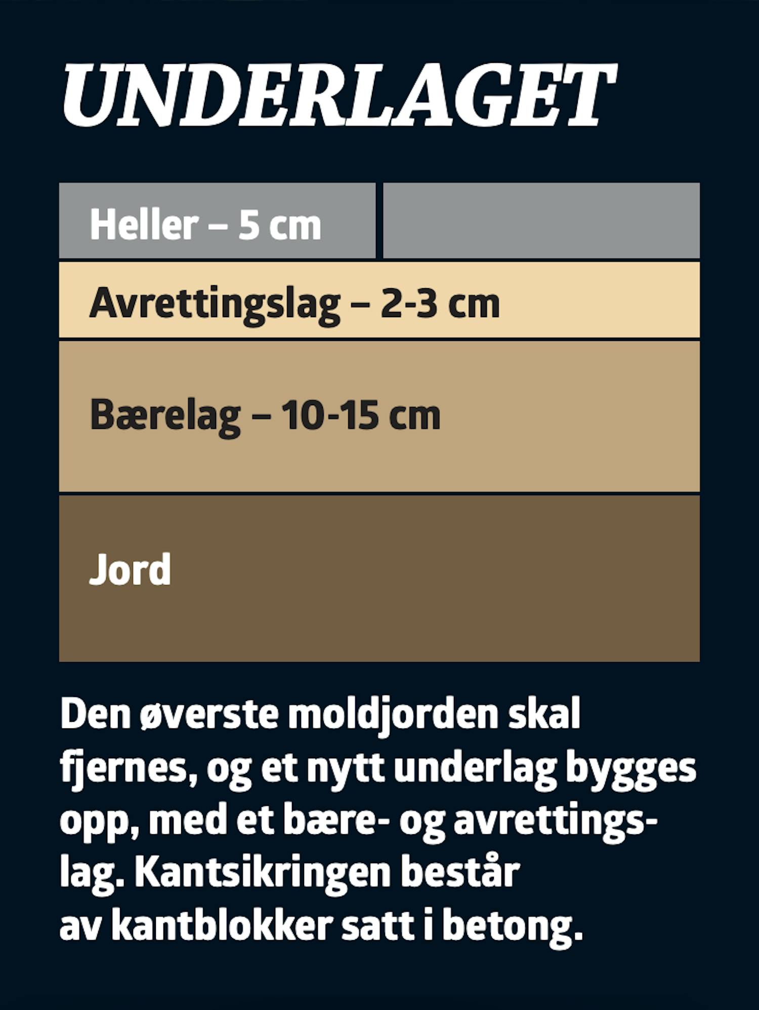 Dette er et stort og tidkrevende prosjekt, men ikke vanskelig. Sørg for å lage en solid kantsikring og et underlag med riktig fall og god komprimering.