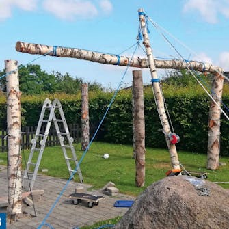 Når du skal sette opp store, asymmetriske stolper som disse, er den enkle løsningen å grave et hull og støpe dem fast i det.