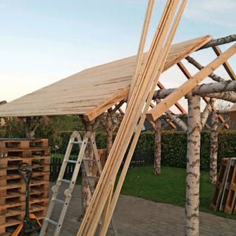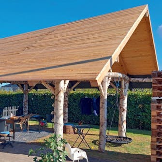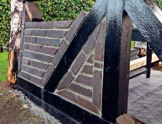 Det er smart å lukke et par av sidene på takoverbygget for å gi ly. Det kan du for eksempel gjøre med grove bjelker og murstein.
