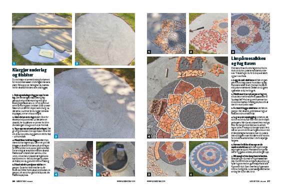 Hvis du vil lage en mosaikkterrasse, må du bestemme deg for hvordan den skal se ut. Det er lurt å lage en skisse der du tegner opp mønsteret i farger. Da får du en god oversikt, og du kan regne ut omtrent hvor mange steiner du trenger.
