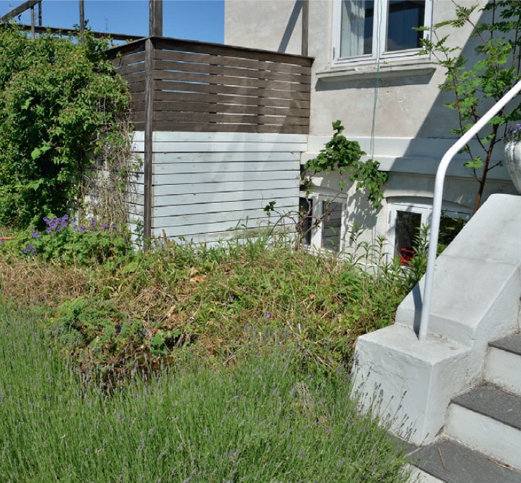 Her er det et virvar av småbusker. Slik kan det gå, når et bed får lov å vokse ut av kontroll. Det har lenge vært planen å gjøre noe, derfor har bedet fått forfalle.