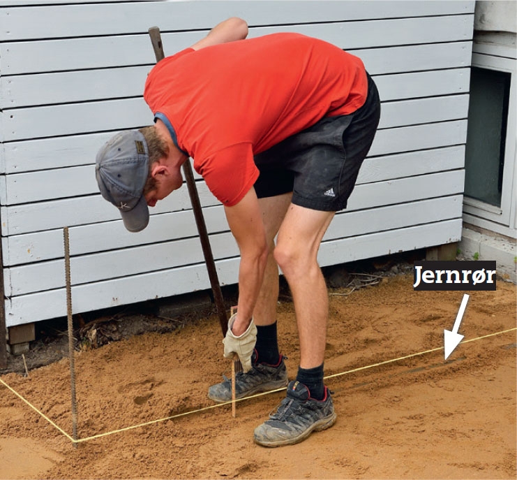 Legg ned lirer i sanden, som du kan rette opp etter. Her brukes jernrør som graves ned i den dybden som tilsvarer nivået steinene skal ligge i. Når du flytter rørene, fyller du bare sporene med sand og klapper dem til med en spade.