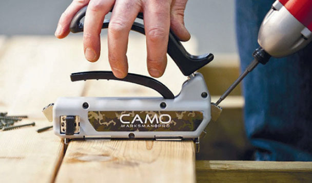 Bordene skrus fast med skjult innfesting ved hjelp av et såkalt Camo-system. Systemet sikrer en jevn avstand mellom bordene og gjør at du kan skru fast terrasseskruene usynlig i sidene på bordene.