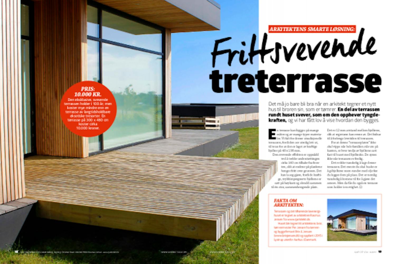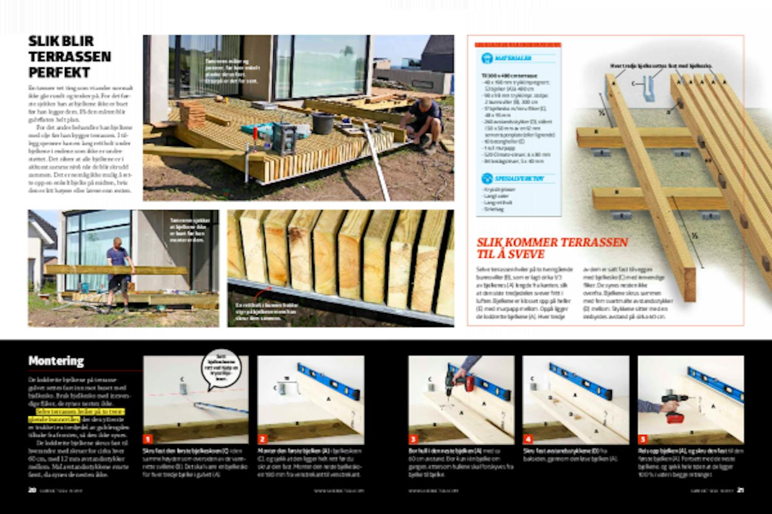 De loddrette bjelkene på terrassegulvet settes fast inn mot huset med bjelkesko. Bruk bjelkesko med innvendige fliker, de synes nesten ikke.