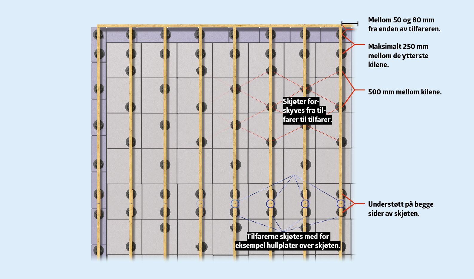 Hvis du kun skal løfte litt, bruker du den klassiske kilen, bare i en svart utgave. Fargen gjør den nesten usynlig under terrassebordene. Det skal alltid brukes to kiler oppå hverandre.