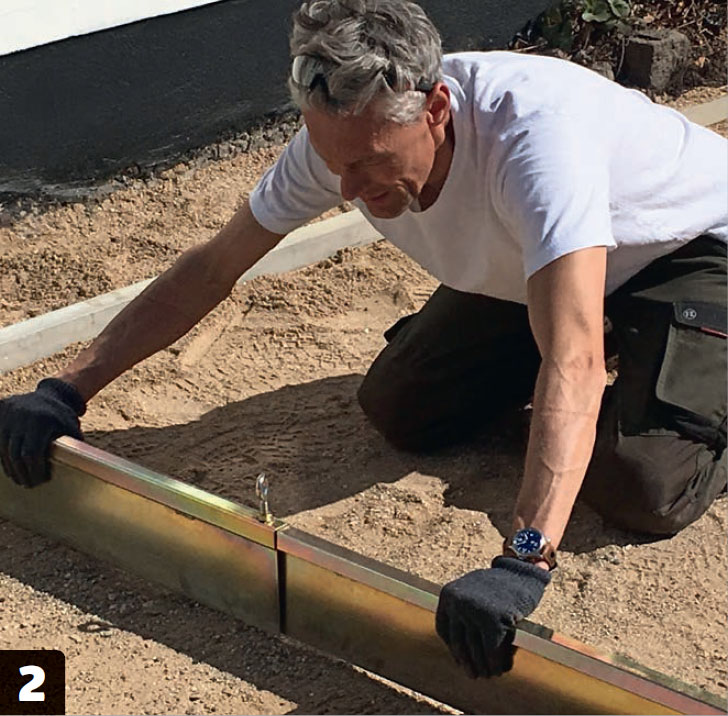Bygg opp igjen avrettingslaget. Under de gamle steinene ligger det et kompakt men ujevnt lag av grus. Det suppleres med ekstra grus, som trekkes av og planeres.