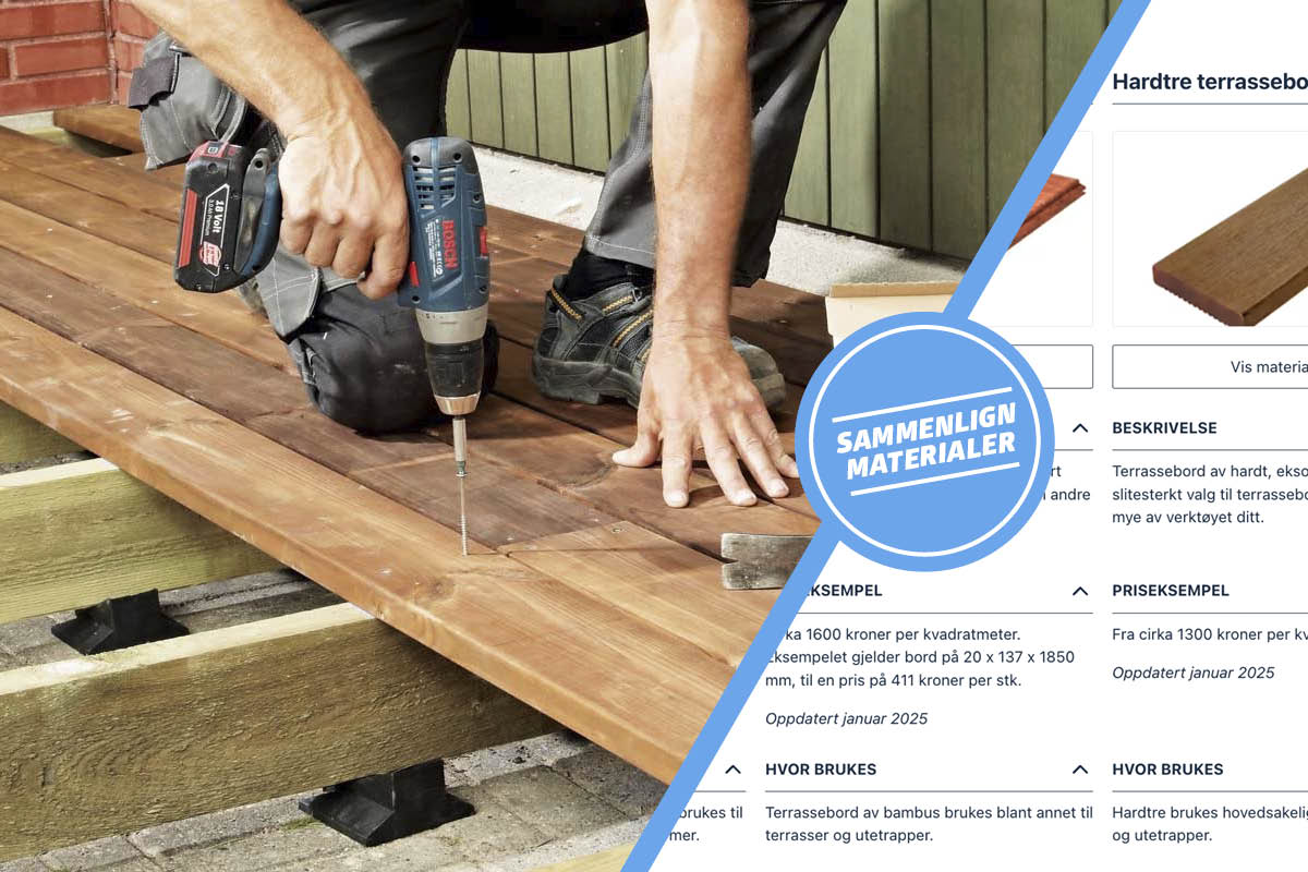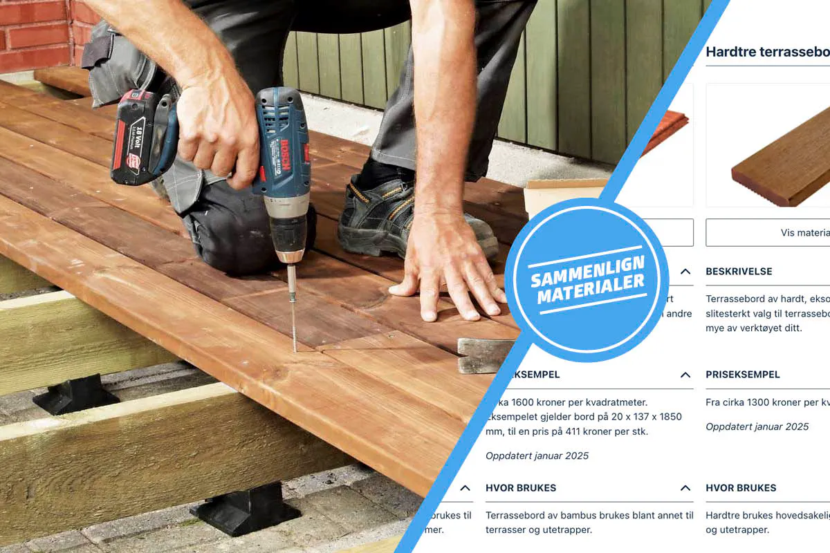 Terrassebordene må enten være naturlig råte- og soppbestandig, av behandlet treverk eller av kompositt.