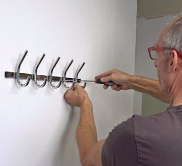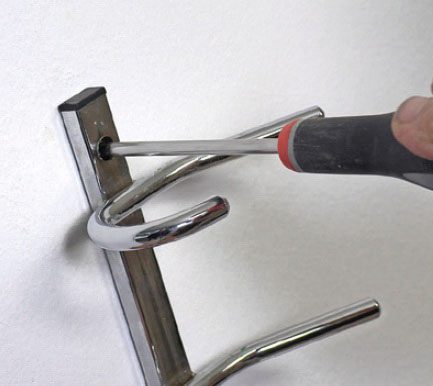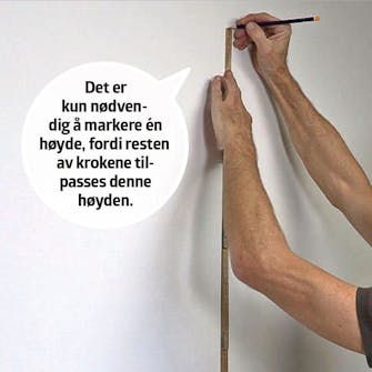 Skru i krokene med håndkraft, og sørg for å holde dem vinkelrett på veggen. Peker krokene i hver sin retning, er det nemlig ingen som legger merke til at de sitter på rad og rekke.
