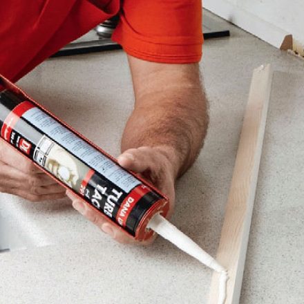 En glideskinne til gardiner henges for eksempel opp med veldig små skruer, og er underlaget porøst, kan de ha problemer med å sitte. En stripe monteringslim på skinnen letter belastningen på skruene.