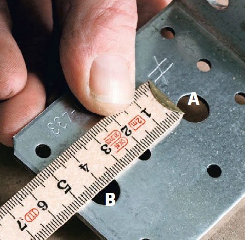 Når du skal bore hull til opphengsbeslag, skal avstanden mellom hullene være 100 % nøyaktig. Så i stedet for å gjette deg frem til midten, kan du med fordel måle avstanden fra kanten av det ene hullet til den samme kanten på det andre.