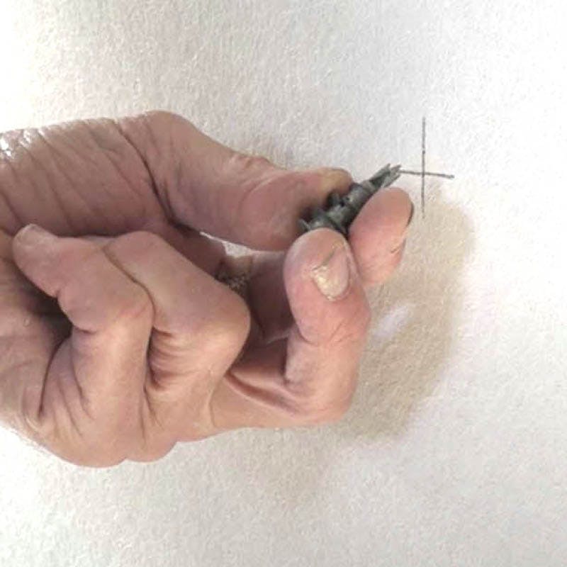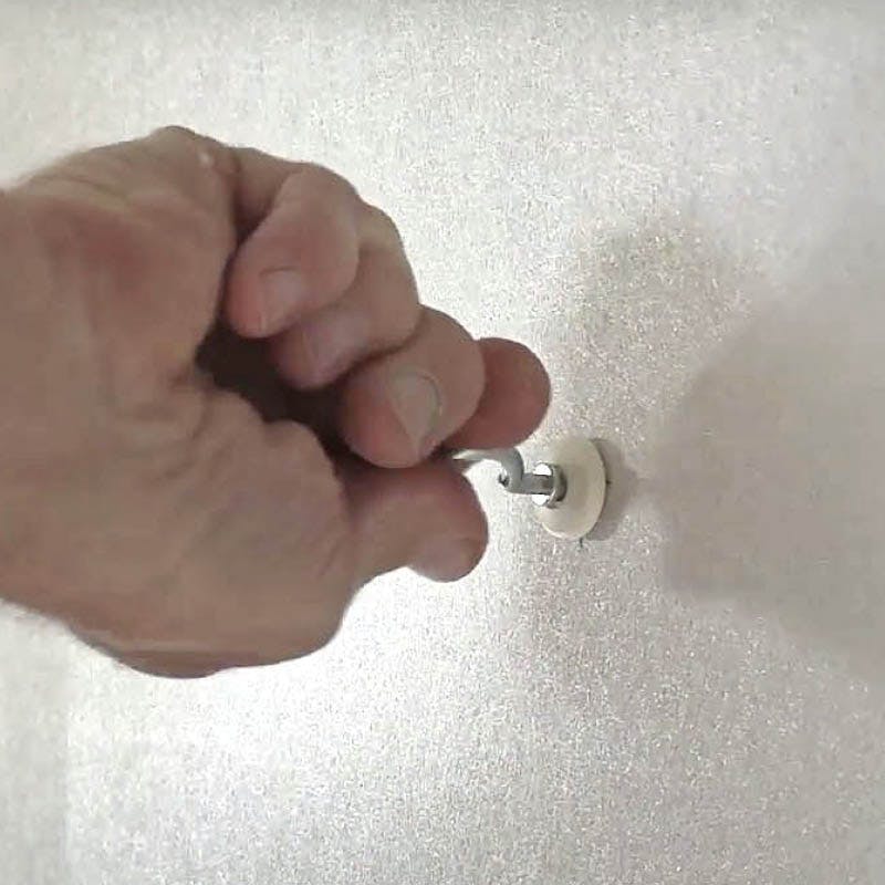 Når kroken dreies i klokkeretningen og gjengene skrus gjennom gipsrosetten, vil rosetten krølle seg sammen til en hard ball på baksiden av gipsveggen. Når du ikke kan skru kroken lenger, er det et tegn på at rosetten har krøllet seg nok sammen.