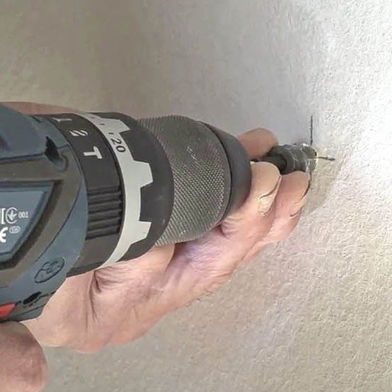 Merk opp stedet og trykk pluggen litt inn i veggen. Plasser den vinkelrett på veggen og finn frem en skrutrekker med stjernebits.