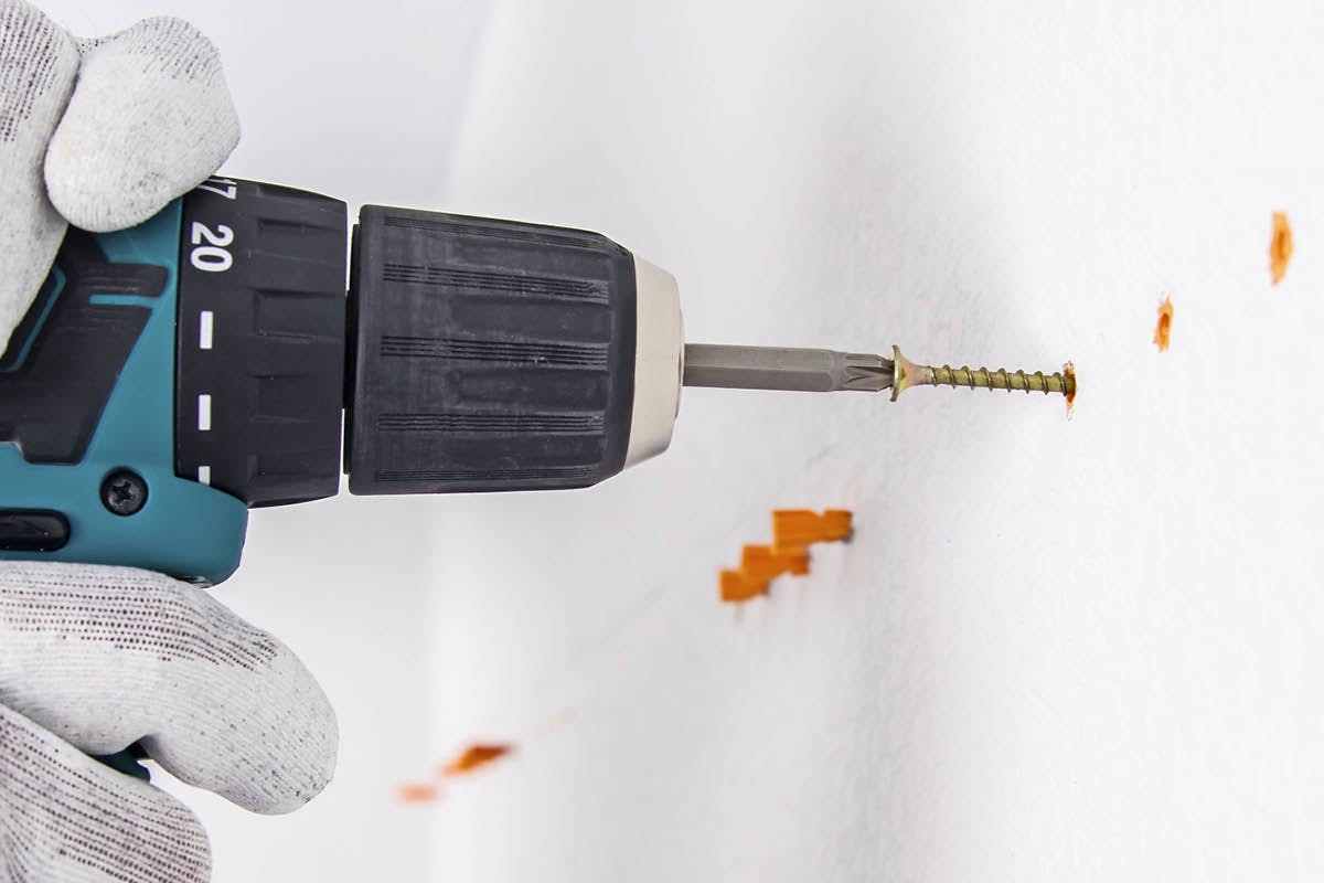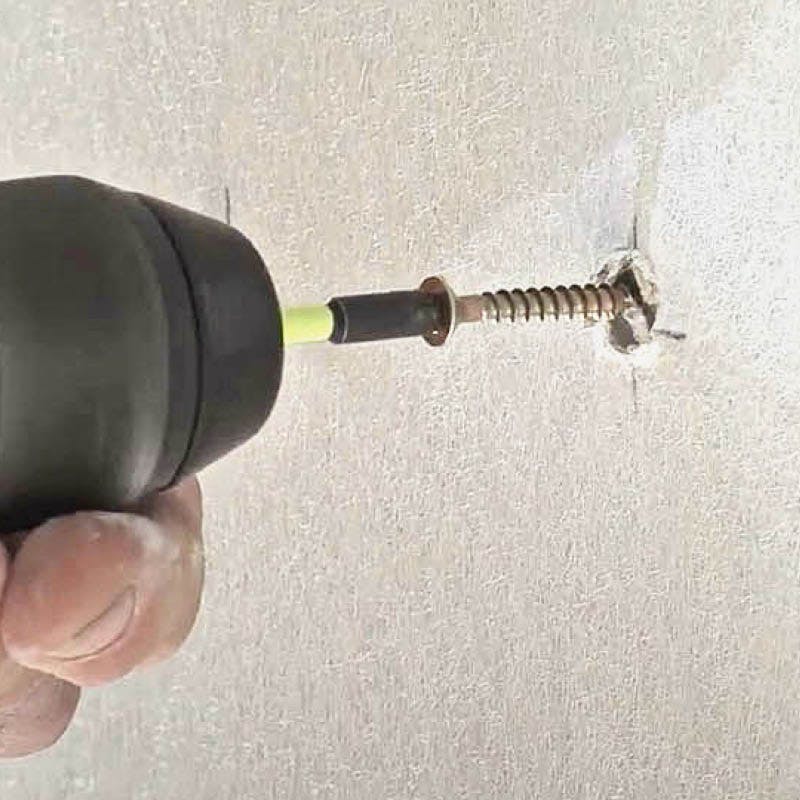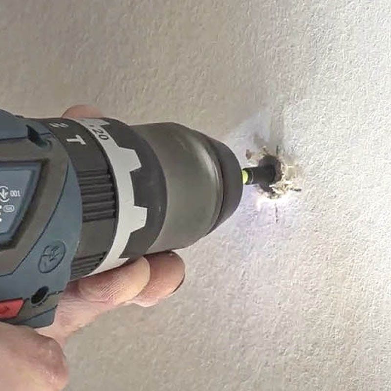 Trykk bitsen inn i pluggen og skru den sakte inn i gipsveggen. Ved å støtte pluggen med et par fingre kan du sørge for at den ikke kommer ut av kurs.