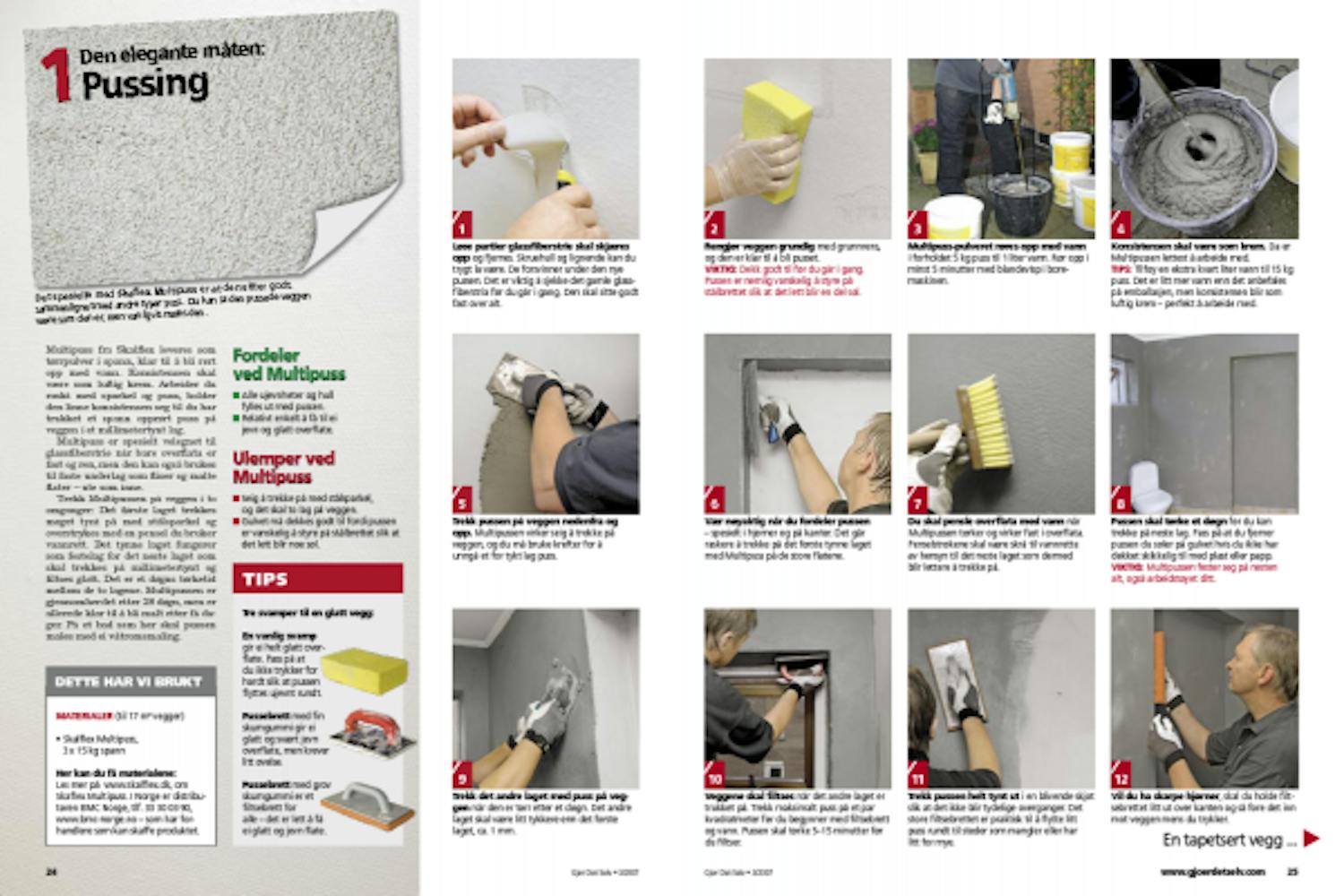 Vær nøyaktig når du fordeler pussen - spesielt i hjørner og på kanter. Det går raskere å trekke på det første tynne laget med Multipuss på de store flatene.