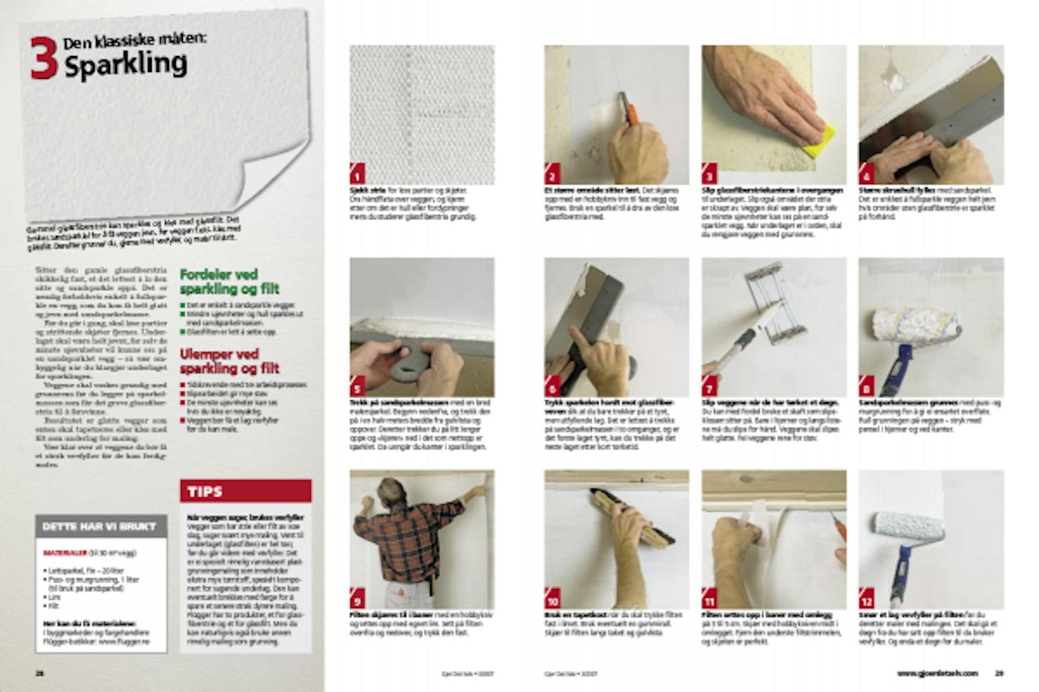 Før du går i gang, skal løse partier og strittende skjøter fjernes. Under-laget skal være helt jevnt, for selv de minste ujevnheter vil kunne ses på en sandsparklet vegg - så vær omhyggelig når du klargjør under laget for sparklingen.