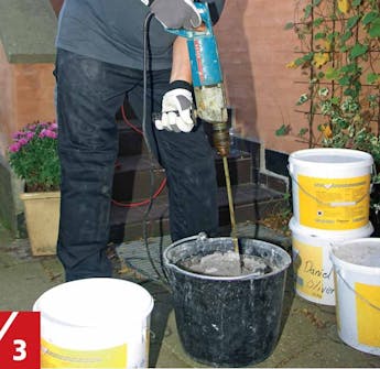 TIPS: Tilføy en ekstra kvart liter vann til 15 kg puss. Det er litt mer vann enn det anbefales på emballasjen, men konsistensen blir som luftig krem - perfekt å arbeide med.