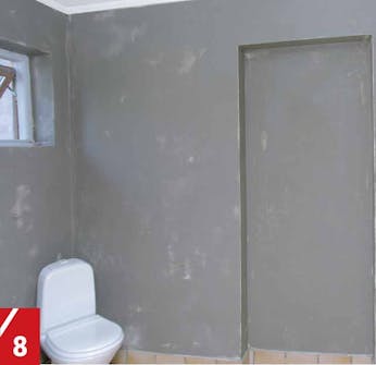 Trekk det andre laget med puss på veggen når den er tørr etter et døgn. Det andre laget skal være litt tykkere enn det første laget, ca. 1 mm.