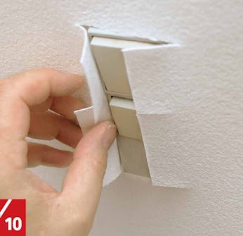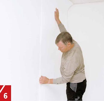 Sjekk stria for løse partier og skjøter. Dra håndflata over veggen, og kjenn etter om det er hull eller fordypninger mens du studerer glassfiberstria grundig.