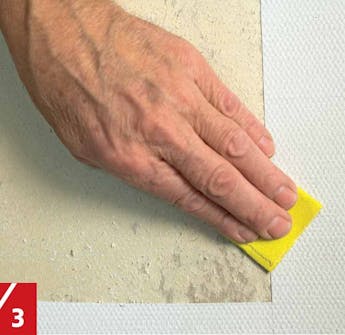 Trekk pussen helt tynt ut i en blivende skjøt slik at det ikke blir tydelige overganger. Det store filtsebrettet er praktisk til å flytte litt puss rundt til steder som mangler eller har litt for mye.