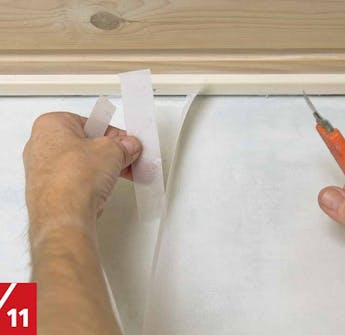 Når du setter opp tapet med omlegg, skal du skjære gjennom de to banene med en skarp hobbykniv midt i omlegget. Fjern de to avskårne strimlene, og du får en tett skjøt mellom banene.