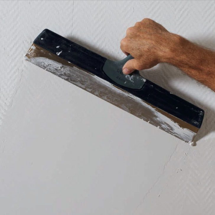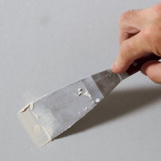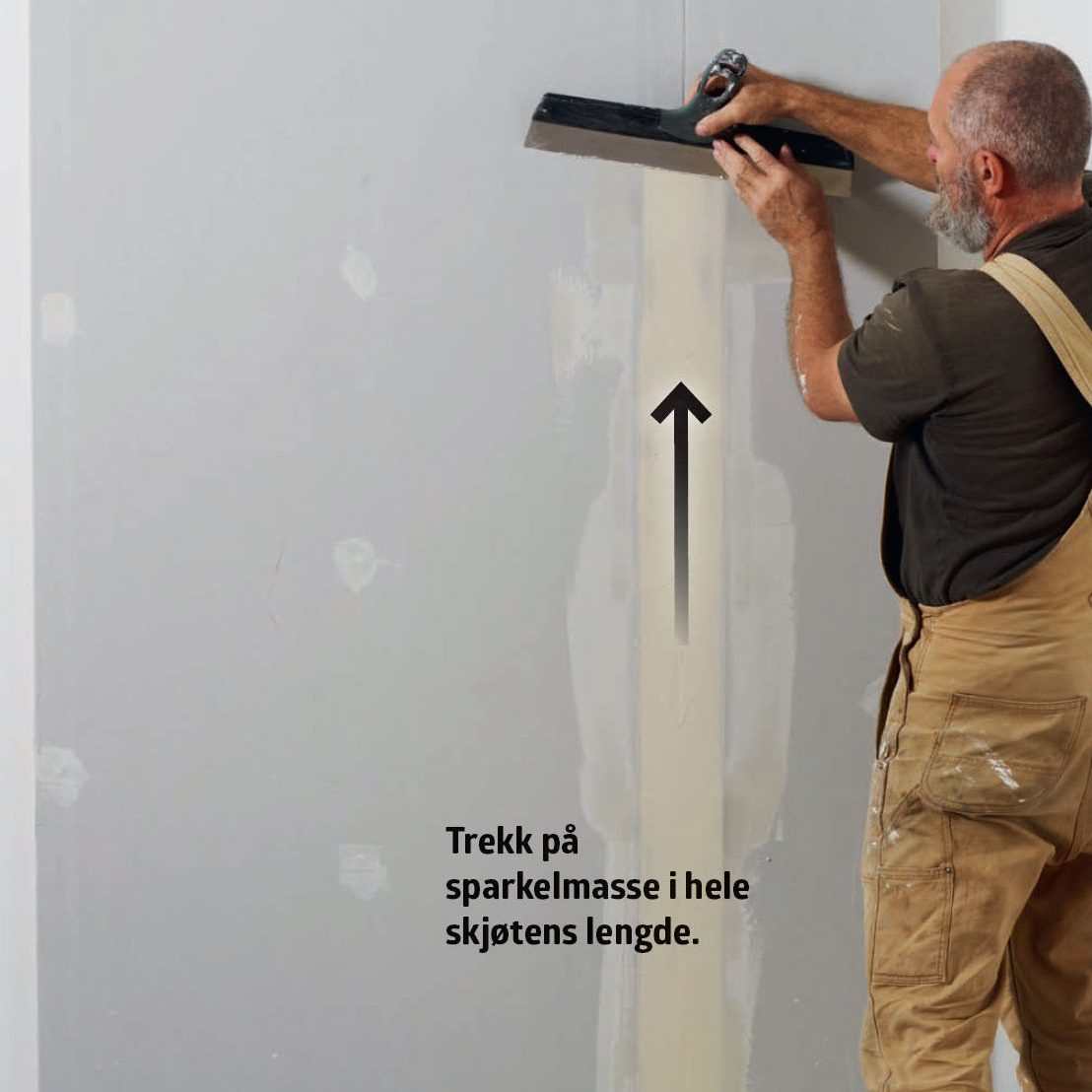 Trekk et lag sparkelmasse på veggen. Sparkelmassen trekkes på i et jevnt lag med en bred stålsparkel.