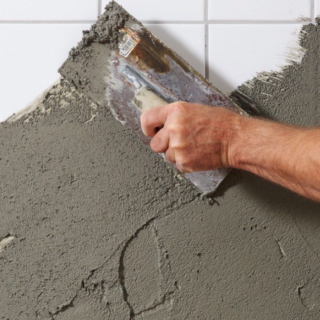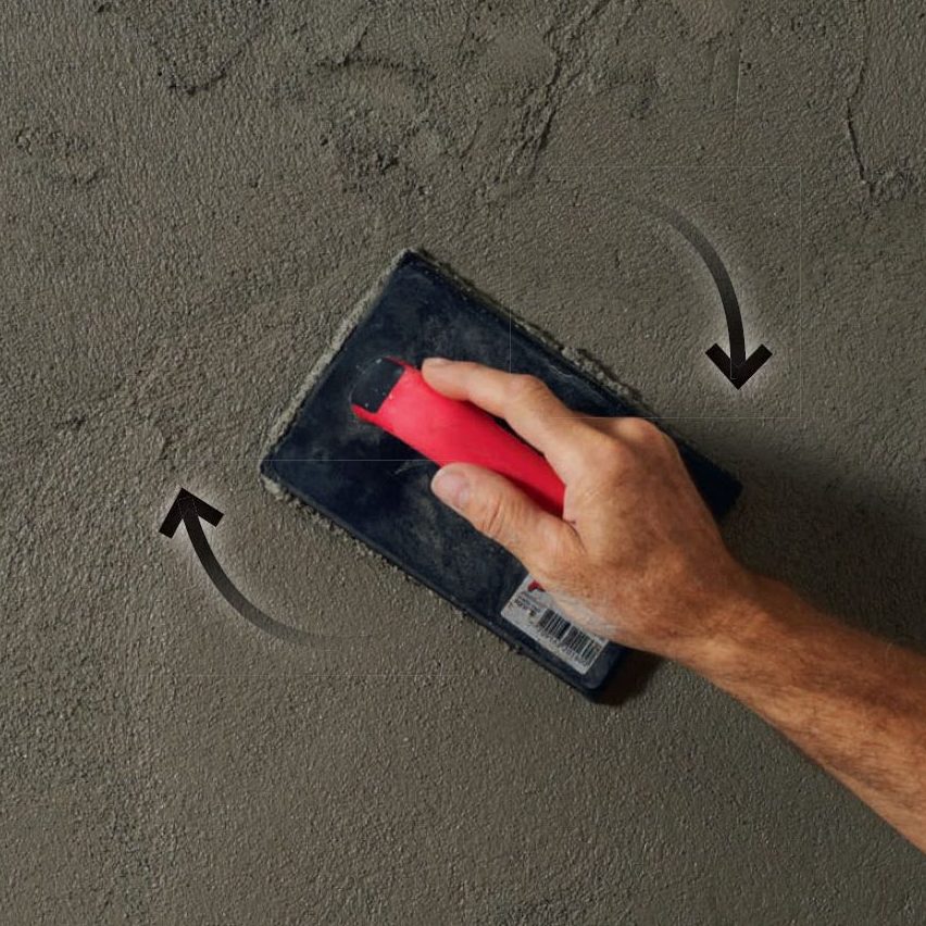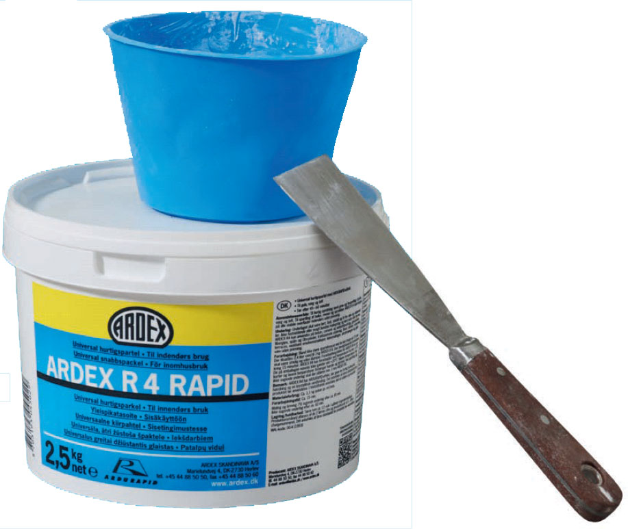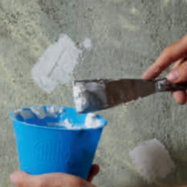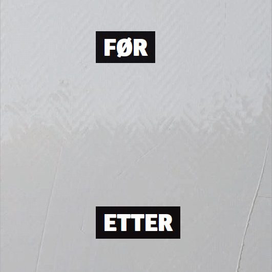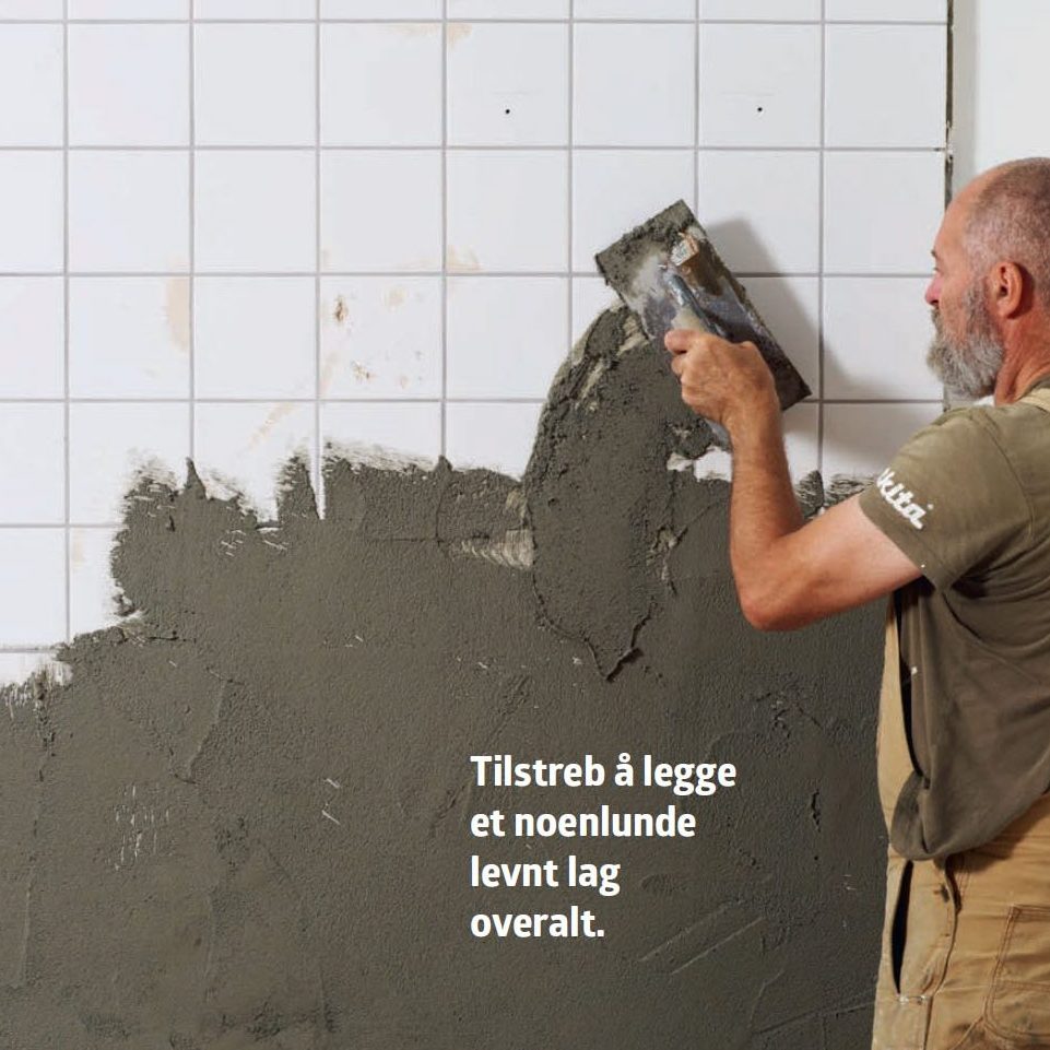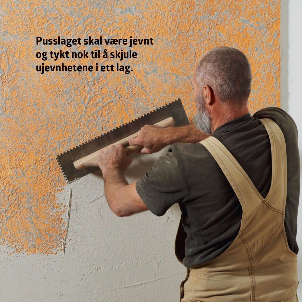 Trekk ut pussen i et jevnt lag med en stålsparkel. Pussen vi bruker kan uten problemer hefte på alle faste overflater.