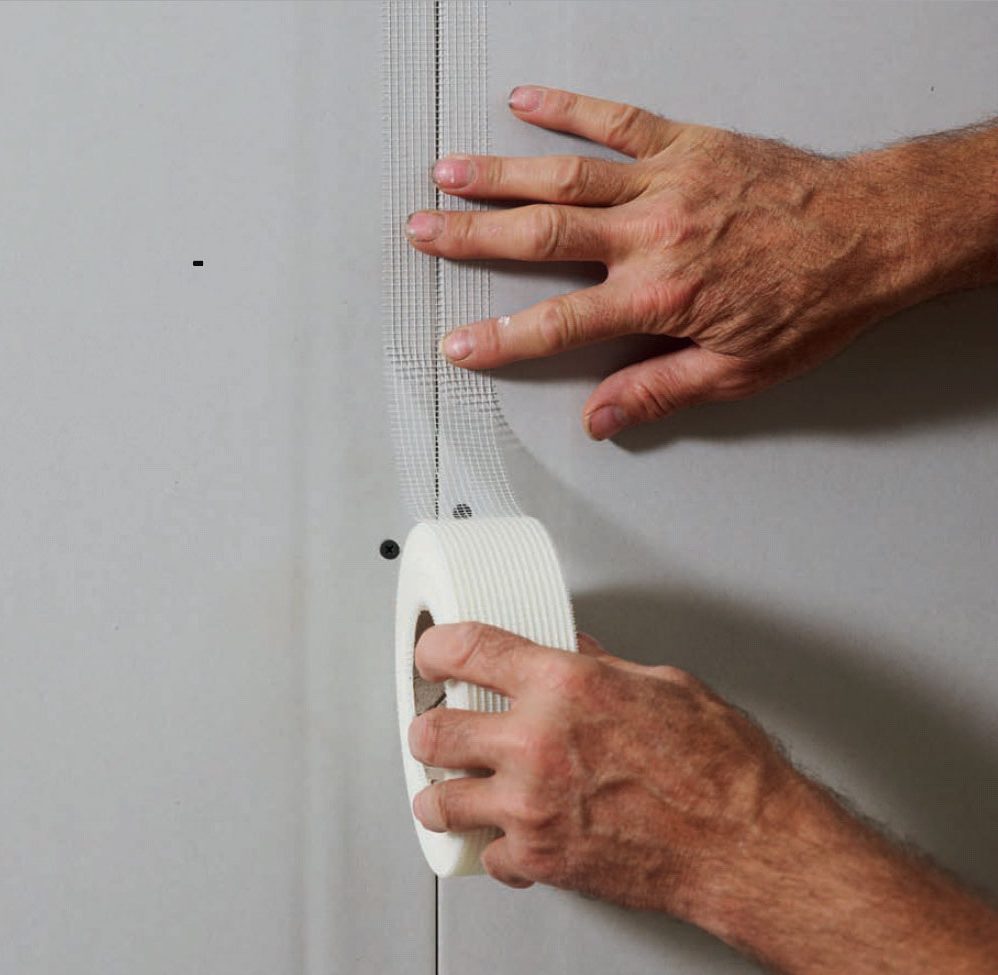 Lapp hullene. Vi bruker en universalsparkelmasse, som kan fylle hull på opptil 10 mm i første lag.