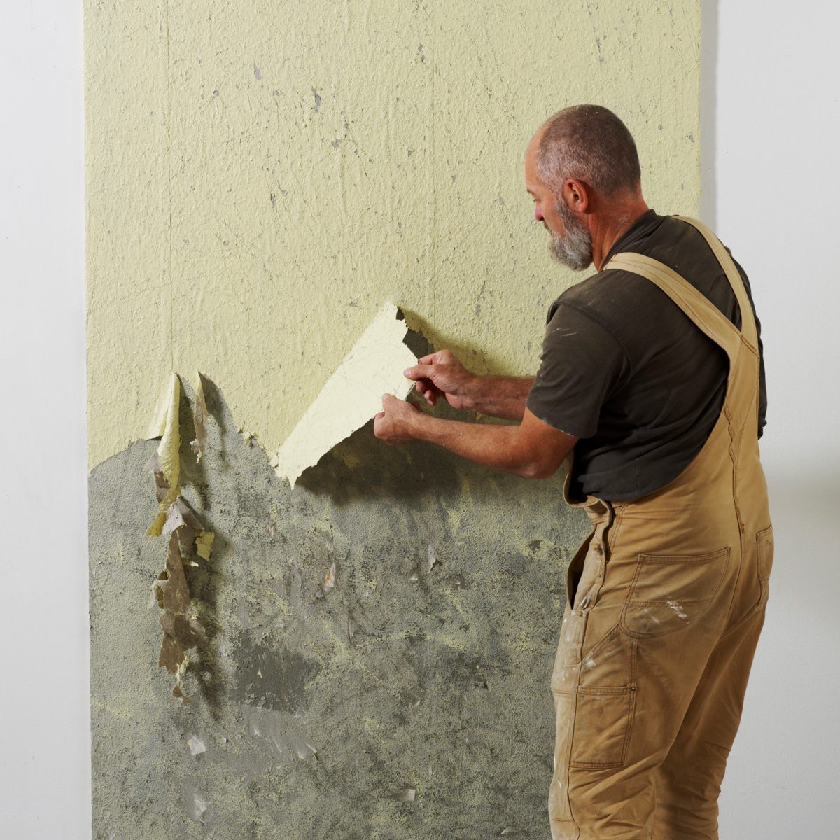 Du kan ikke sparkle på et papirunderlag. Tapetet vil helt enkelt gå i oppløsning underveis. Derfor skal strukturtapetet fjernes.