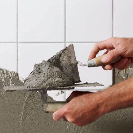 Legg pussen på flisene. Flisene er rengjort, slik at fett og skitt ikke hindrer massen i å få tak.